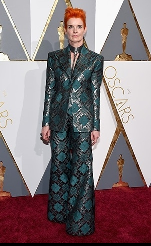 A figurinista Sandy Powell homenageando o cantor David Bowie